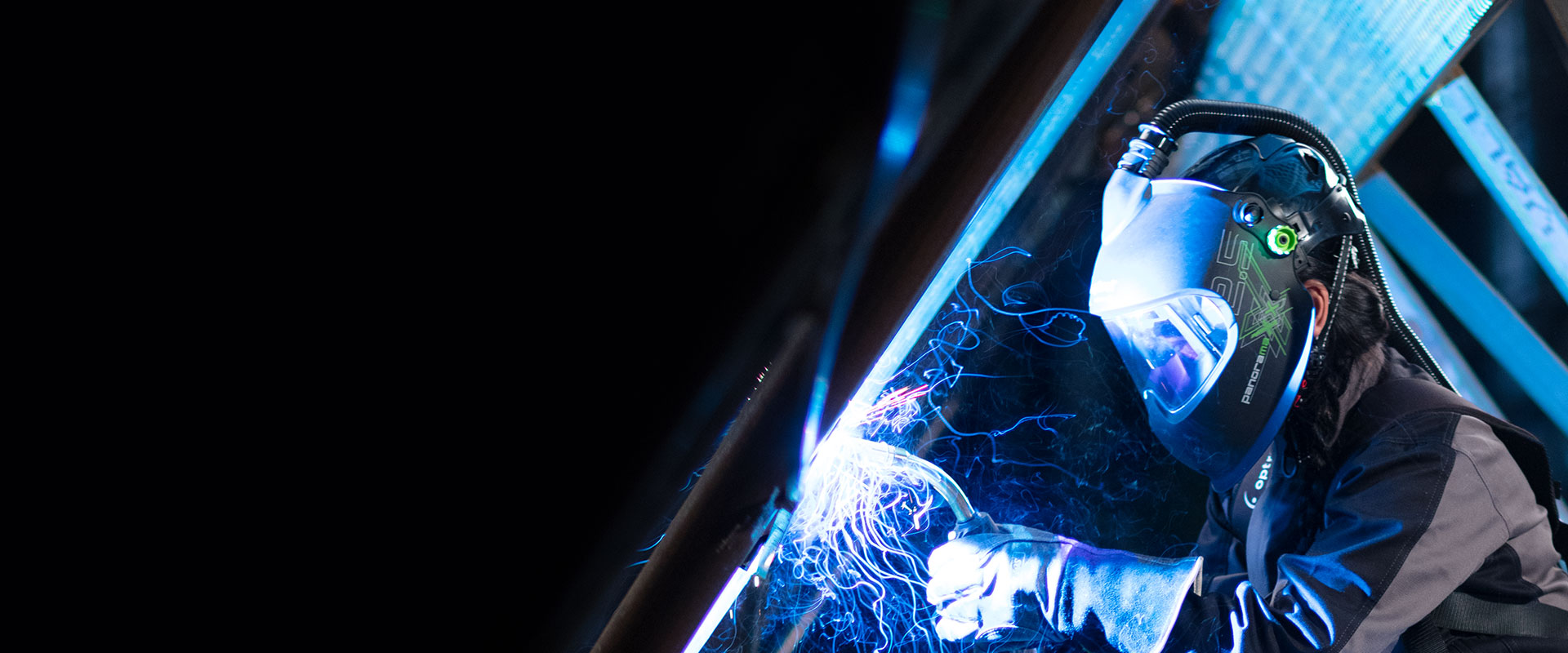 Felvértezve az adaptív ShadeTronic© technológiával, panorámás látómezővel, IsoFit© fejpánttal és az új optrel HardHat ipari munkavédelmi sisakkal.