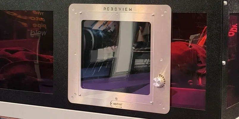 Amikor a robot nem végez hegesztést, a roboview tiszta rálátást biztosít a robotcellára és a varratra. Ez automatikusan történik, mivel a roboview össze van kapcsolva a hegesztőrobot vezérlésével vagy a vezérlőrendszerrel, ennek köszönhetően ez az ablak mindig elsötétedik hegesztés közben.